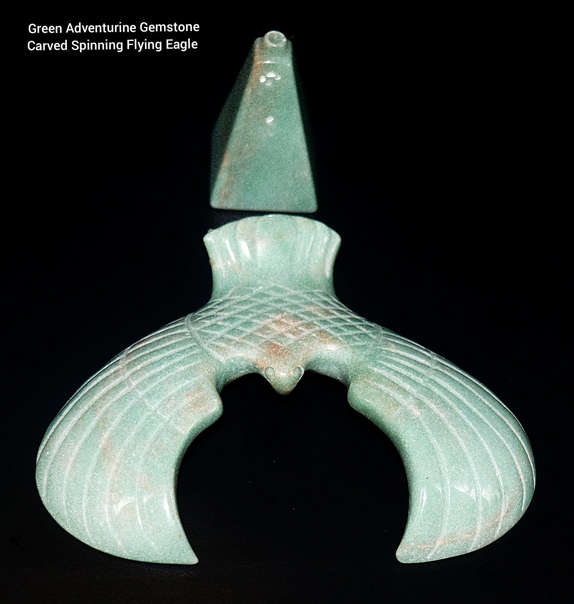 Green Aventurine Gemstone Carved Spinning Flying Eagle