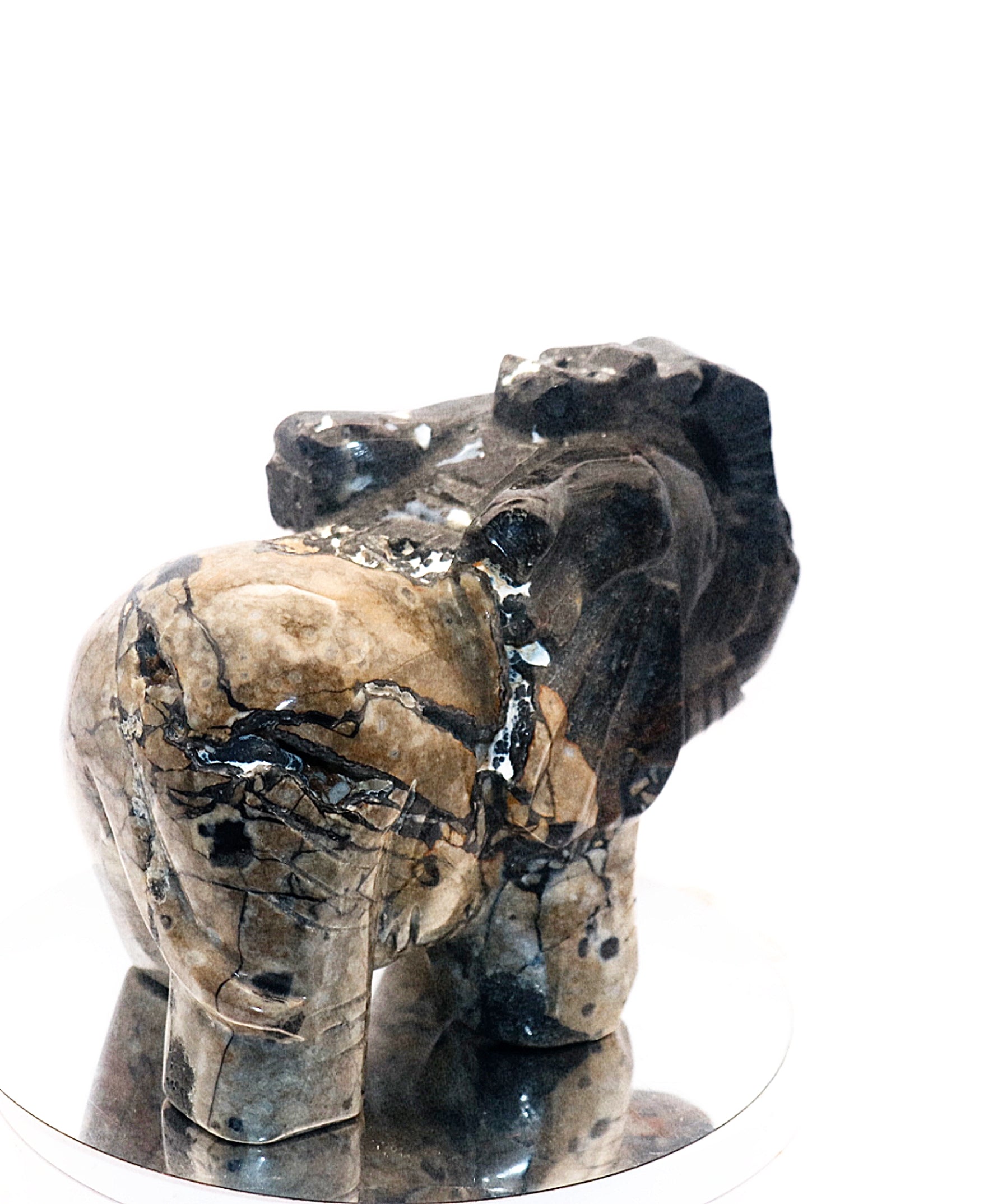 Rare Volcanic Agate UV Light Reaction Gemstone Druzy Carved Elephant