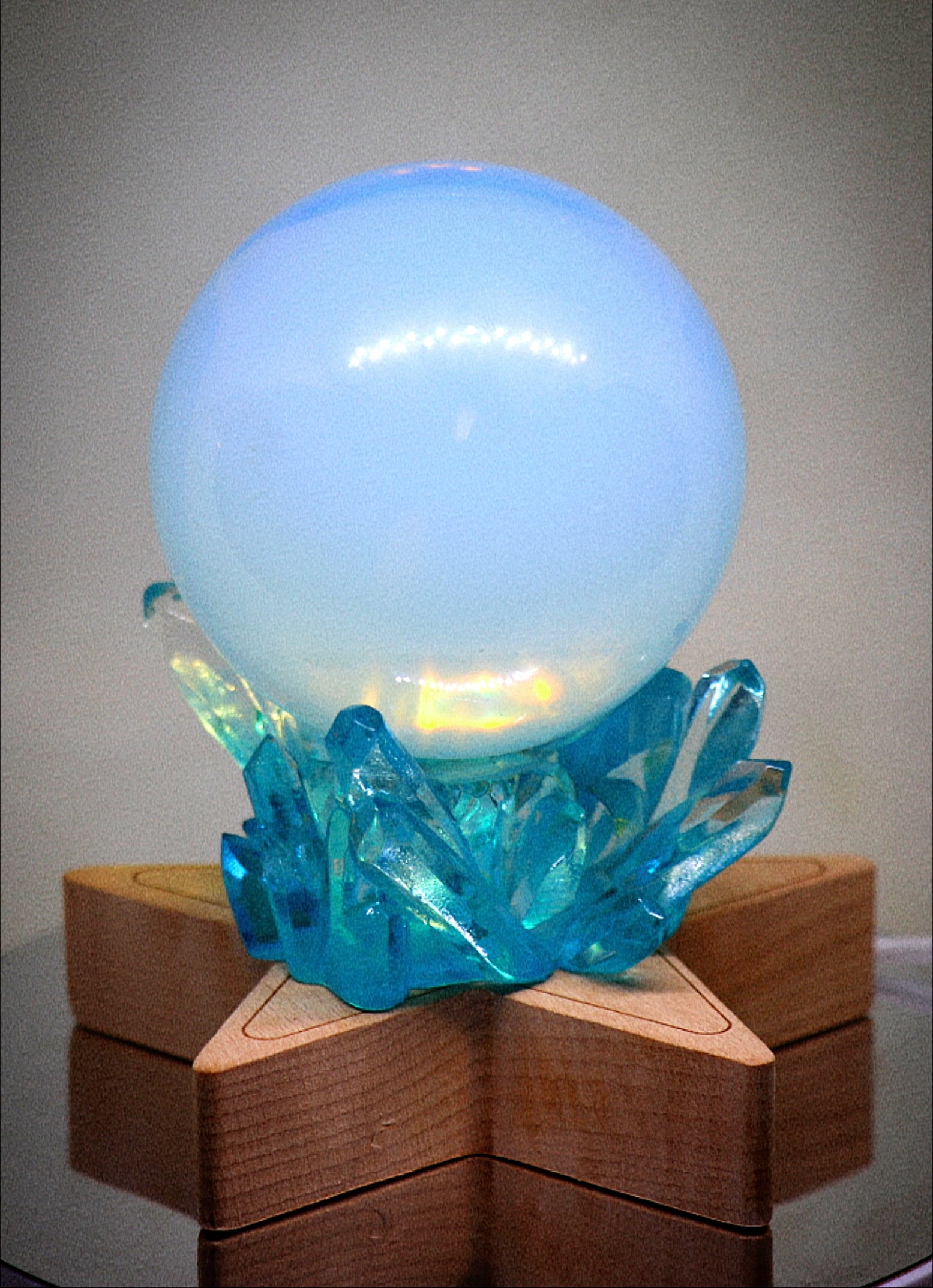 60 - 70mm Opalite Sphere & Light Control Wooden Star Stand