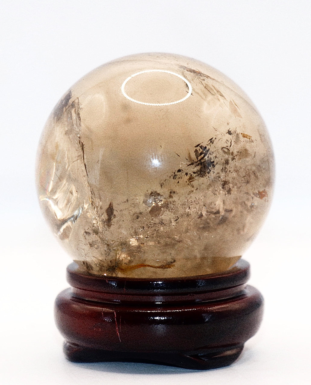 Smoky Quartz Gemstone Sphere with Wooden Stand – The “Universal Crystal”